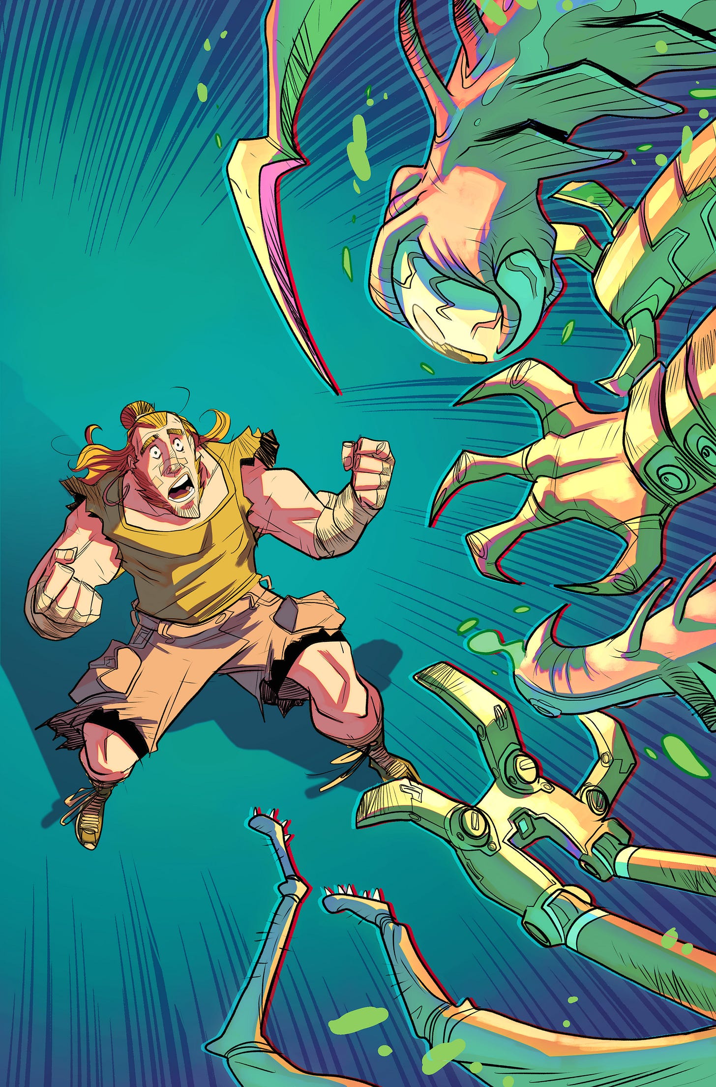 This one is called UNIVERSAL CHAMPION: When a world-famous but insecure professional wrestler gets abducted and entered into a galaxy-spanning fighting competition, he must over overcome his self-doubts and self-destructive tendencies to become the champion he pretends to be before the darker side of this world catches up to him.